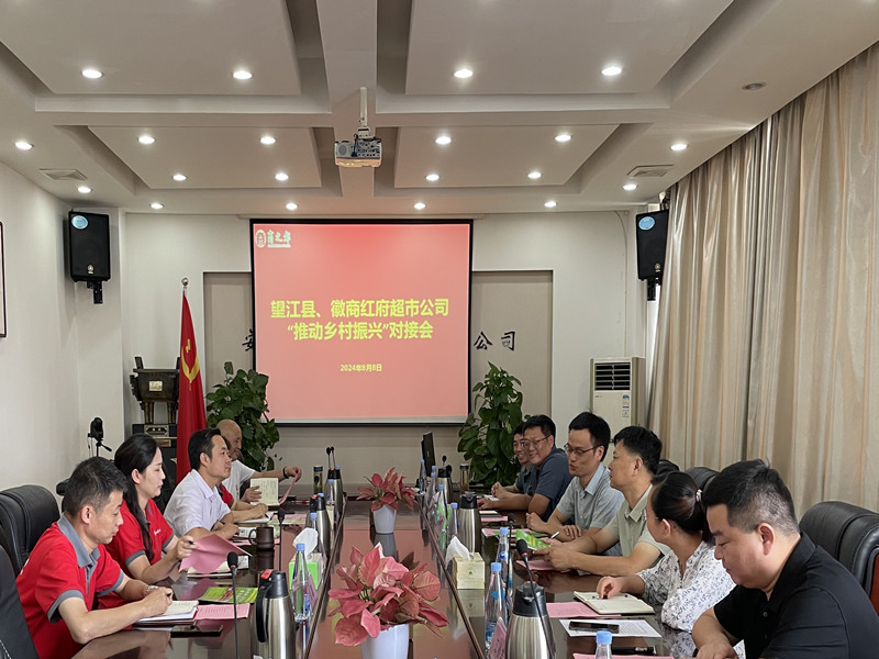 8月8日上午,紅府超市與望江縣人民政府在公司召開“推動鄉(xiāng)村振興”對接會。望江縣人民政府副縣長石德犇一行來訪,商之都副總經(jīng)理、紅府超市董事長任等平等相關人員參與洽談。